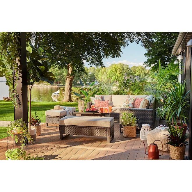 ALLEN + ROTH Ensemble de conversation extérieur Palmore brun avec rangement, 4 morceaux