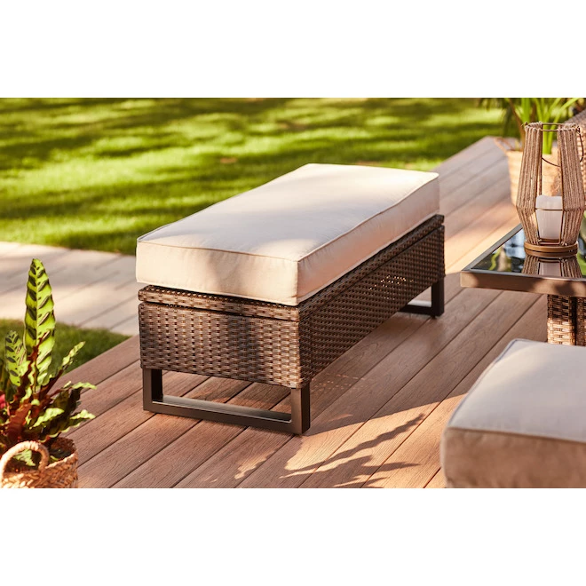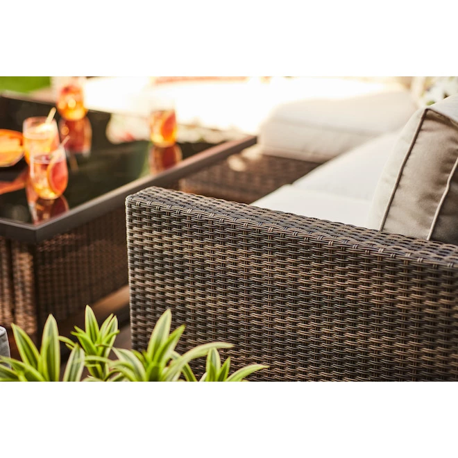 Créez un espace extérieur plus agréable avec cet ensemble de conversation 4 pièces Palmore. Les coussins en tissu polyester beige sont résistants aux UV et aux taches. Comprend un canapé complet, deux bancs et une table en verre à hauteur réglable. Le plateau en verre est réglable en hauteur et peut être relevé manuellement de la hauteur d’une table basse à celle d’une table à dîner.