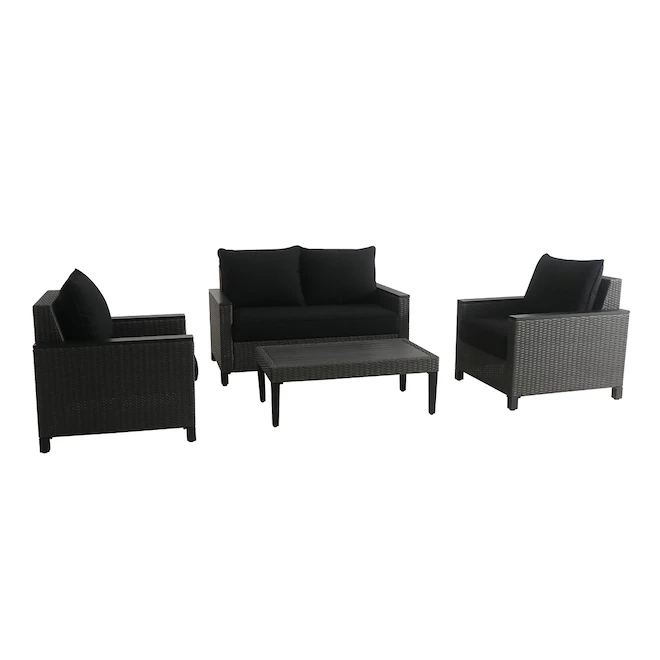 ALLEN + ROTH Ensemble de patio avec coussins noirs Wellesley de Style Selections avec cadre en métal (4 mcx)