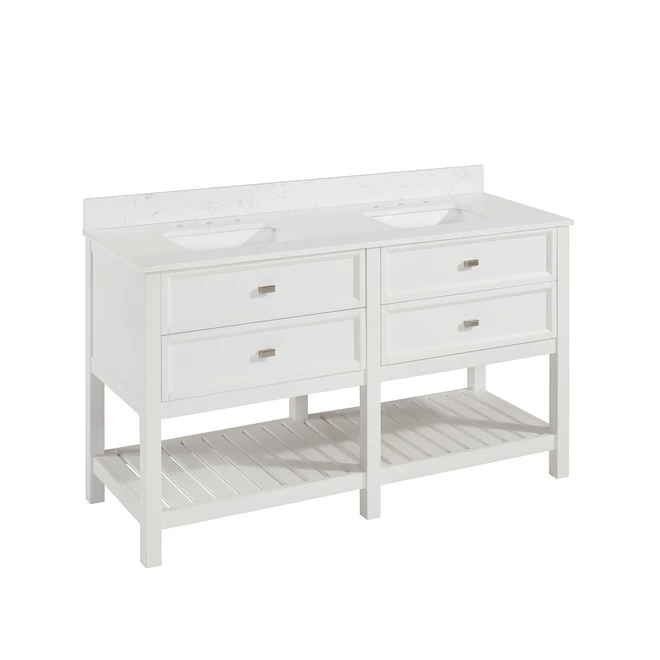 ALLEN + ROTH Meuble-lavabo double Canterbury sous plan blanc dessus en pierre d’ingénierie blanche 60 po