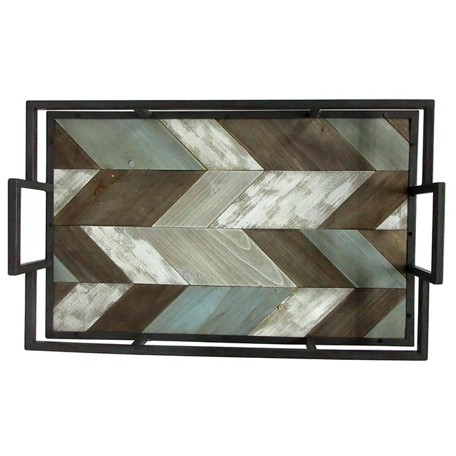 ALLEN + ROTH Plateau de service, 12,25″ x 19,25″ x 4″, gris et brun