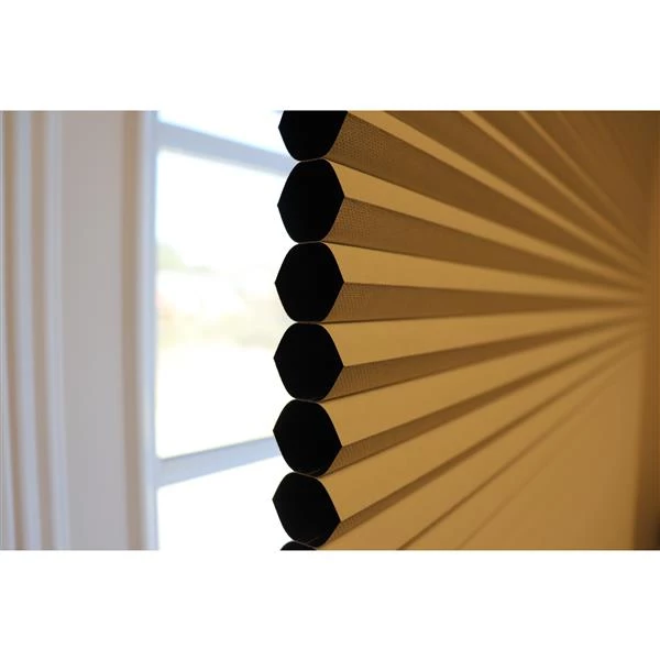 - Le polyester non tissé durable à alvéole simple bloque la lumière extérieure et fournit une isolation supplémentaire de la température extérieure