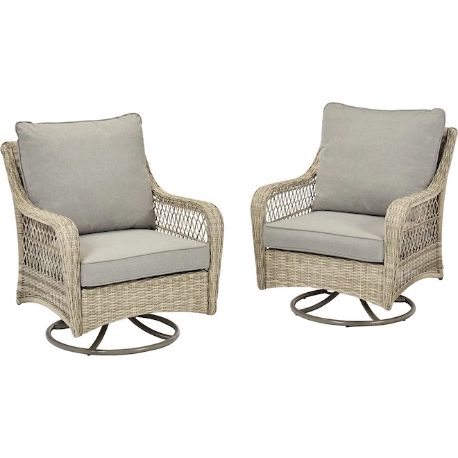 Chaises pivotantes pour patio Parkview par Allen + Roth, grises, ensemble de 2, acier, osier et oléfine