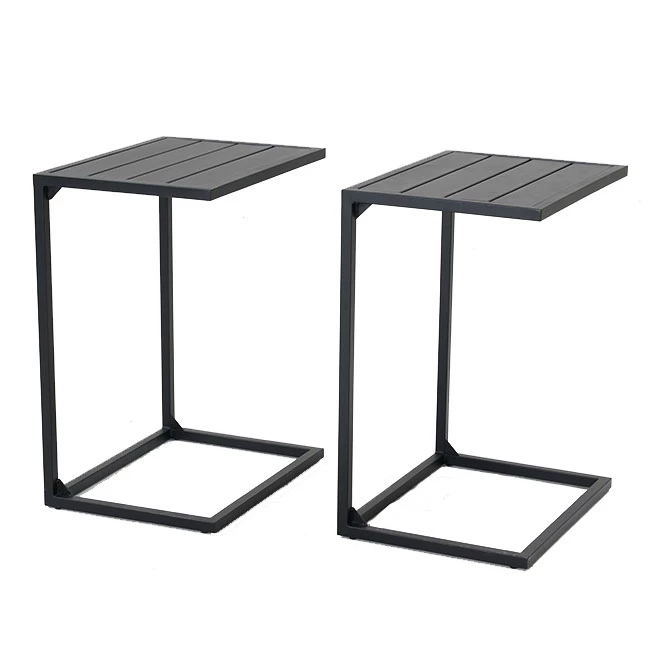 Ensemble de 2 tables d’appoint d’extérieur Allen + Roth en acier noir de 20,08 po x 26,38 po