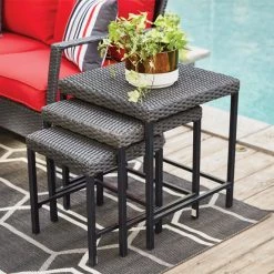 Ensemble de 3 tables gigognes carrées pour patio Allen + Roth en acier et en osier gris