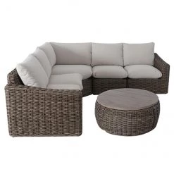 Sectionnel d’extérieur 6 places Brokking de Allen + Roth, acier et osier, gris