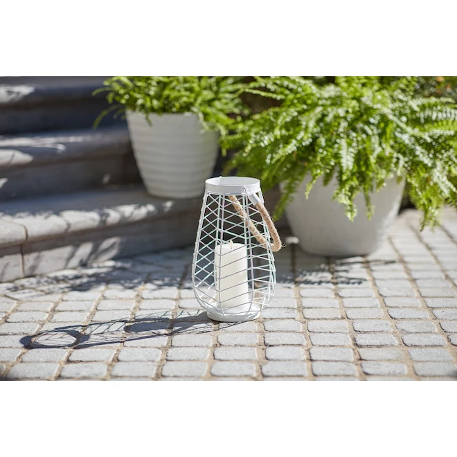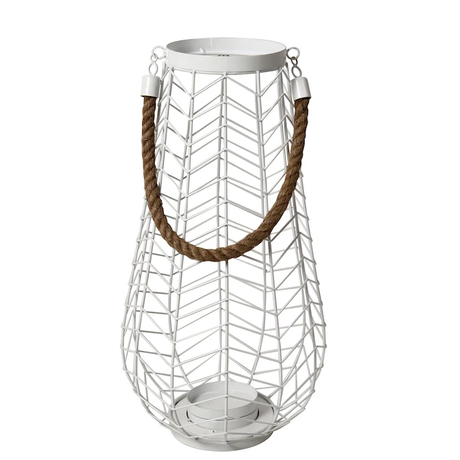 Rehaussez votre espace intérieur ou extérieur avec élégance avec cette lanterne de 12,75 po au fini blanc avec une corde naturelle qui ajoute une touche magnifique à n’importe quel espace. Cet accessoire accrocheur offre un fabuleux décor intérieur et extérieur de jour comme de nuit. Elle est facile à accrocher, que vous le placiez sur la table ou que vous l’accrochiez à votre terrasse.