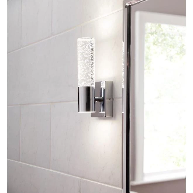 - La finition chromée est élégante et moderne et le verre gravé transparent ajoute de l’intérêt au design moderne