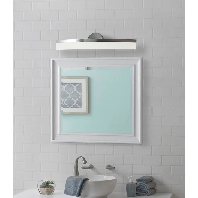 - Avec une longueur de 27 pouces, cette barre d’éclairage pour meuble-lavabo conviendra mieux aux grands meubles-lavabos, mesurant 30 pouces ou plus