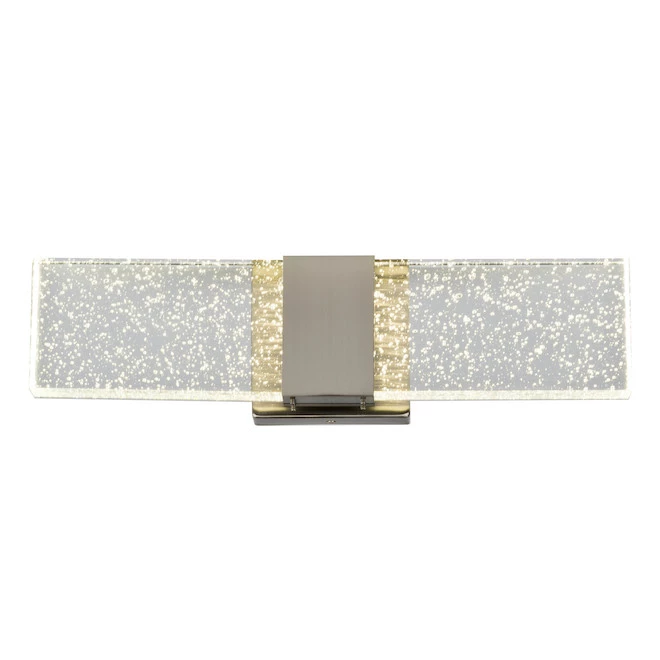 - L’abat-jour en verre transparent et la finition brillante en nickel brossé confèrent à votre salle de bains un style moderne et sophistiqué