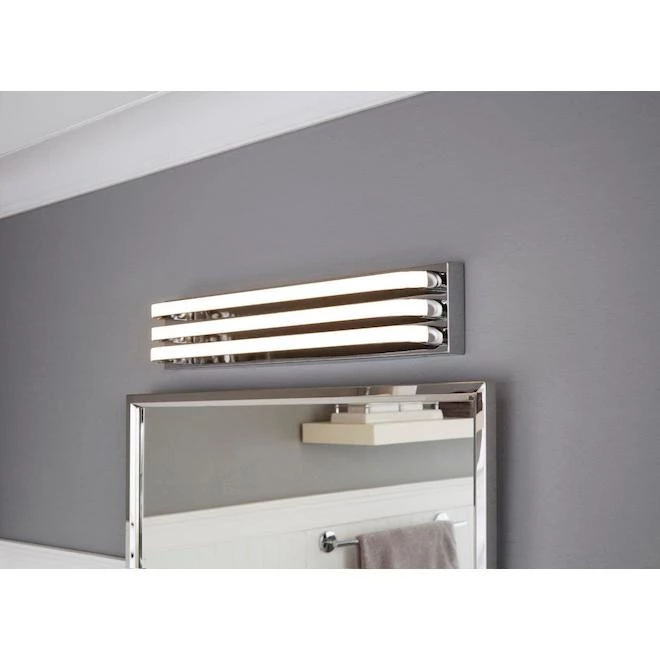 Luminaire pour meuble-lavabo Gatsby d’Allen + Roth de style contemporain à 4 lumières DEL, chrome poli