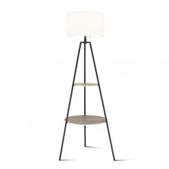 Lampe sur trépied allen + roth avec tablettes, 62 po, métal, noir/blanc