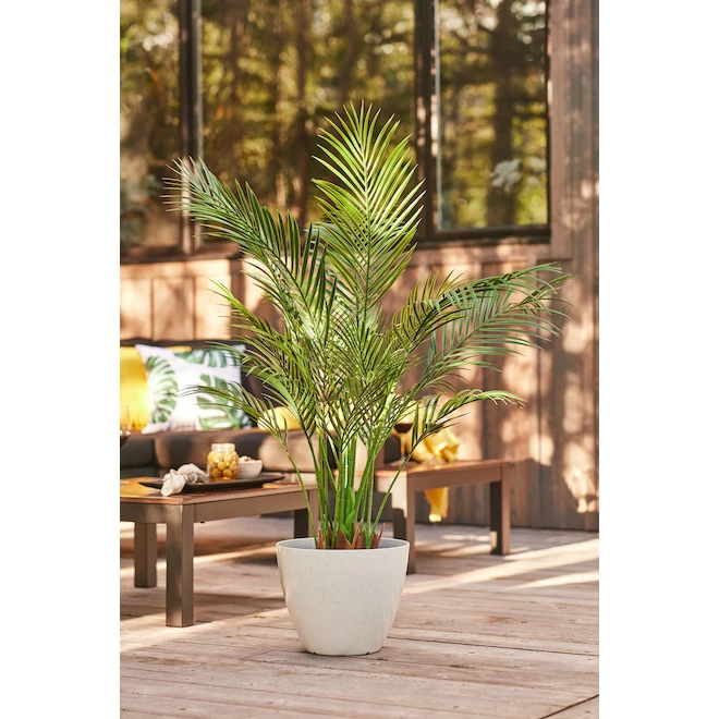Ajoutez une touche élégante et chaleureuse à votre intérieur avec ce palmier artificiel qui reproduit fidèlement la plante, sans l’entretien. Il est fait de plastique durable et robuste pour une apparence naturelle. Ce palmier artificiel est vendu avec son pot à fond plat, vous permettant de le placer facilement où vous voulez. Le pot est enduit d’un fini noir qui s’agence à tous les décors. Il est d’une hauteur de 40 po. Garantie d’un (1) an.