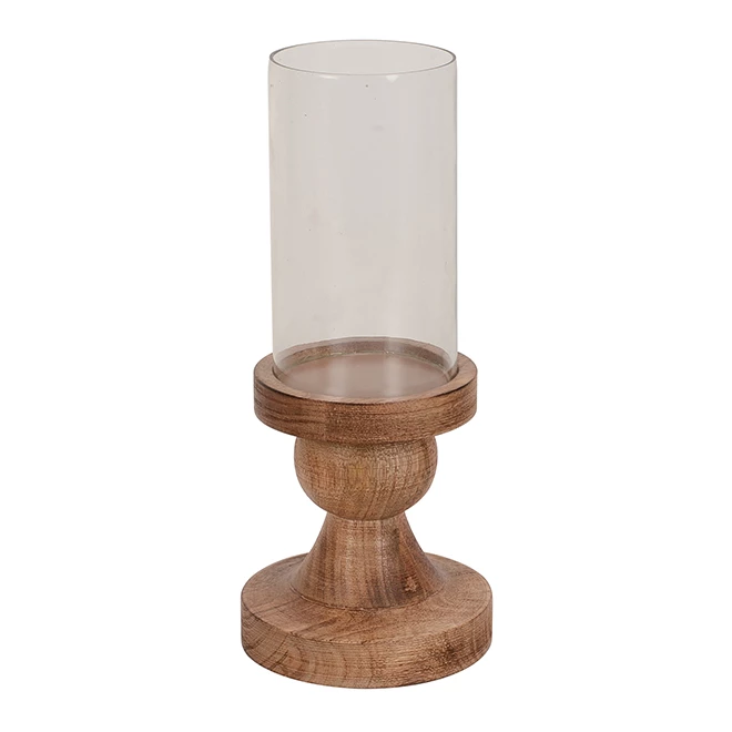 - Porte-bougie en verre de 14 pouces avec base en bois