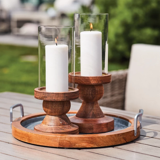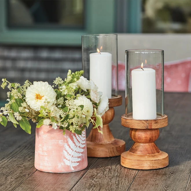 - Ce porte-bougie en finition naturelle et en verre transparent peut être ajouté à une variété de styles d’intérieur et d’extérieur