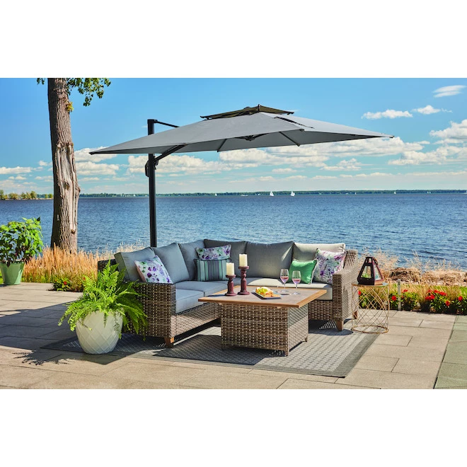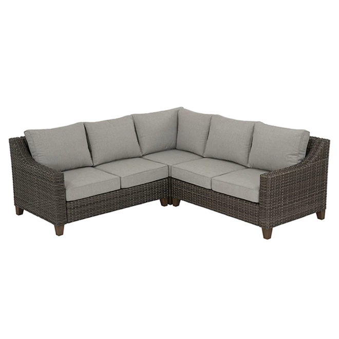 Sectionnel d’extérieur 3 pièces Castlefield par Allen + Roth, 5 places, aluminium et osier, gris