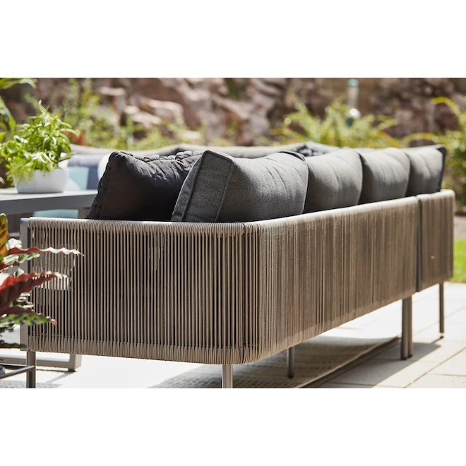 Sectionnel d’extérieur 6 places Brokking de Allen + Roth, acier et osier, gris