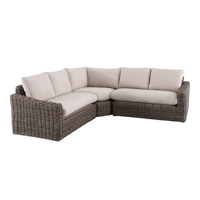 Sectionnel d’extérieur Maitland de Allen + Roth en osier avec coussins en oléfine brun et cadre en métal