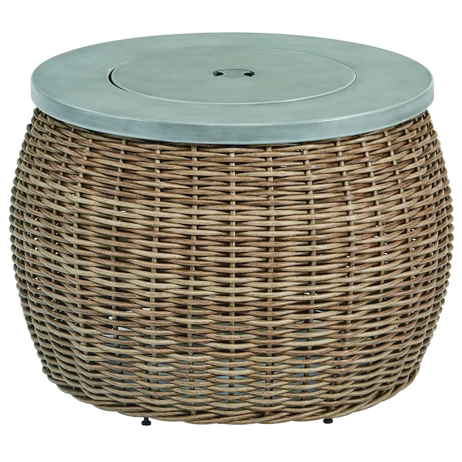 Cette table-foyer de marque Allen + Roth fonctionne au gaz propane avec une bonbonne de 20 lb (vendue sĂ©parĂ©ment). Elle est fabriquĂ©e en acier thermolaquĂ© robuste et en osier tressĂ© Ă la main. Couverte par une garantie d’un an.