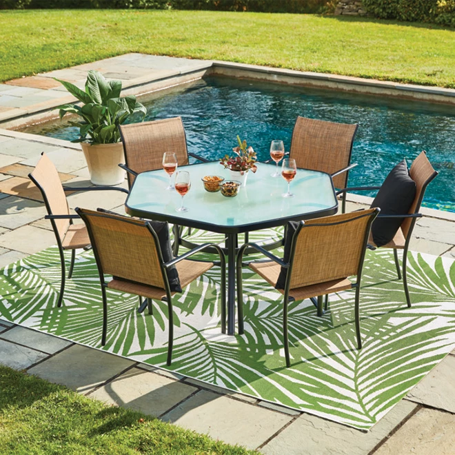 Tapis extérieur Palmier Allen + Roth, 8 pi x 10 pi, vert et blanc